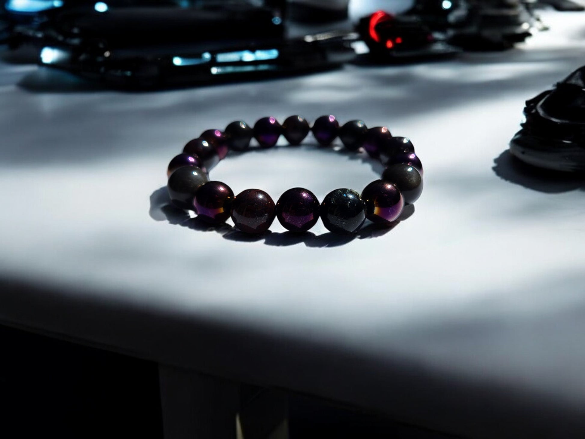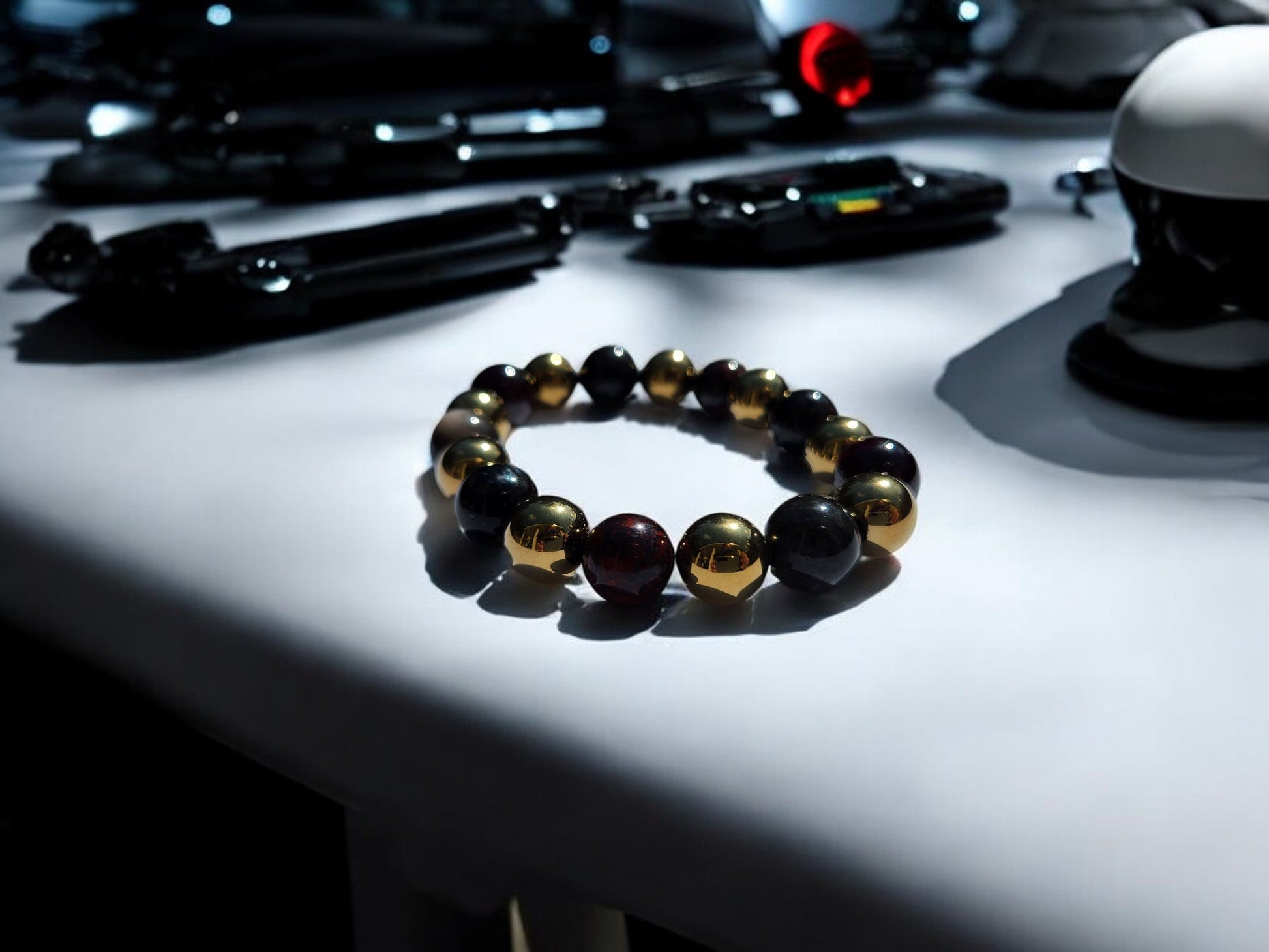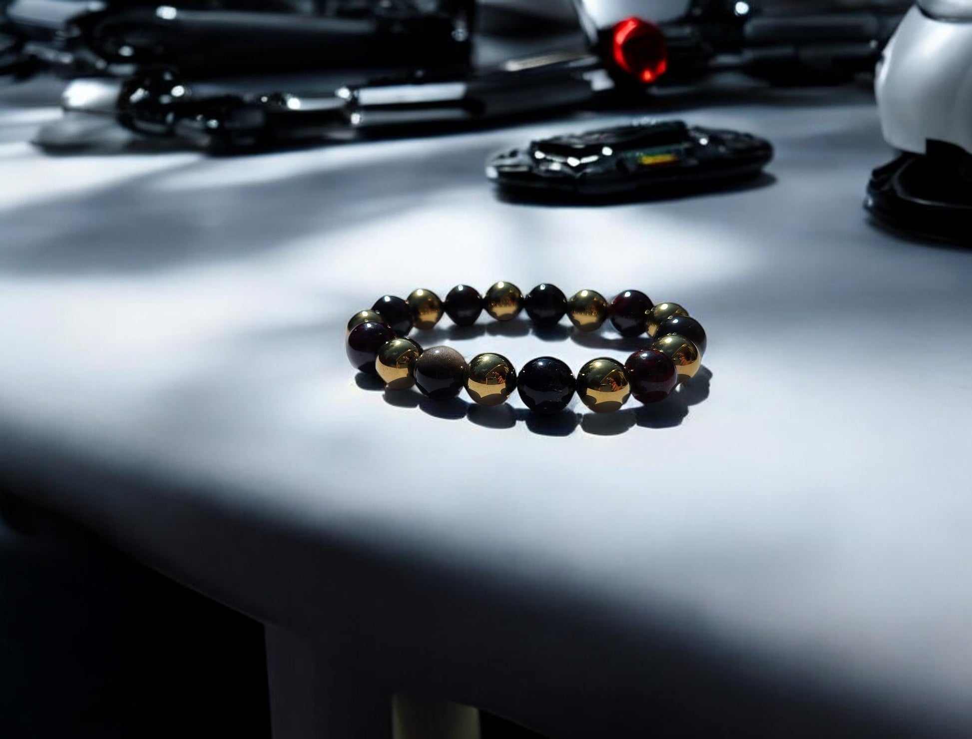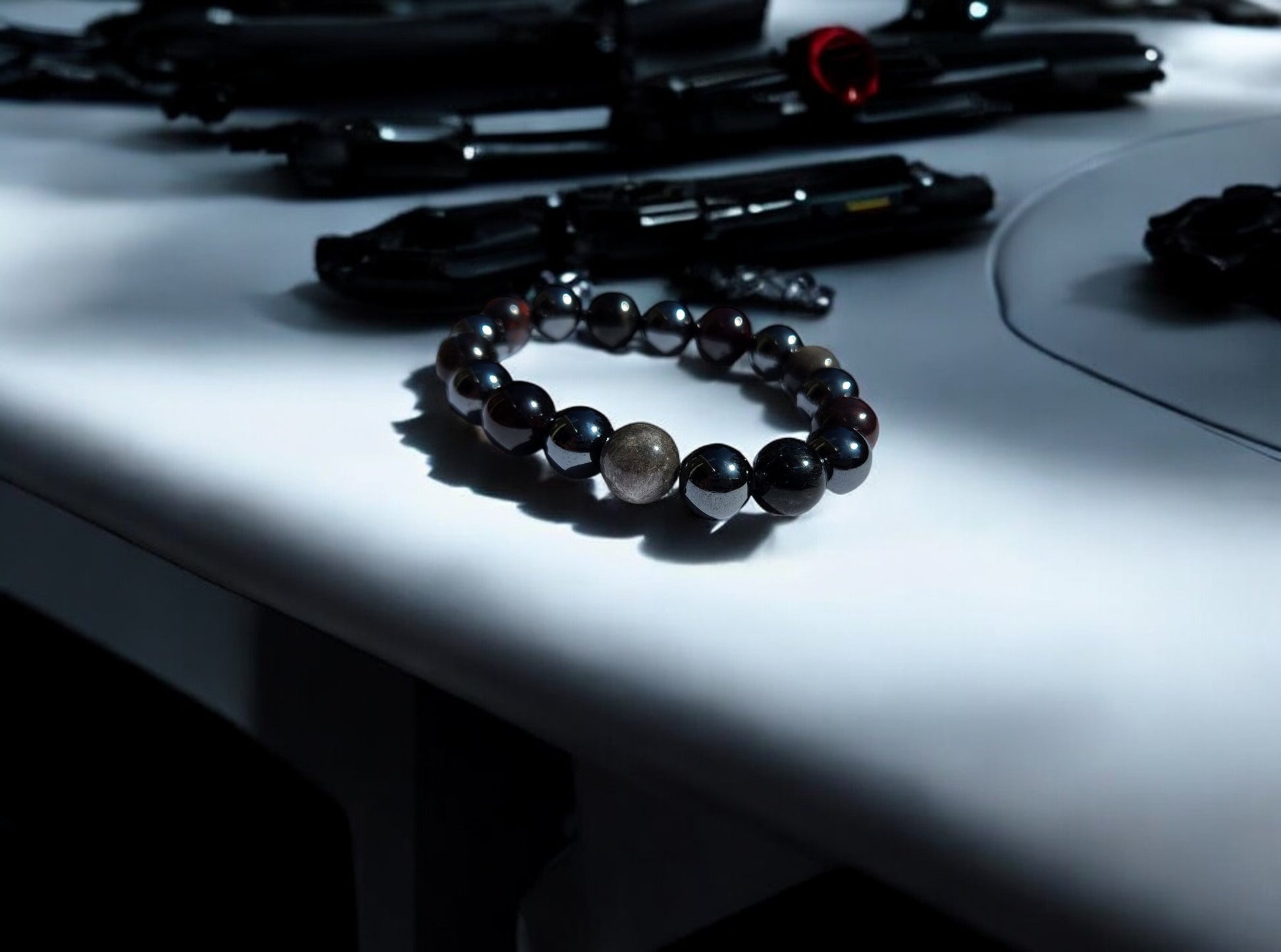 Step into the cosmic realm with our specially crafted energy band, designed to elevate your journey and enhance your cosmic connection. As beings from the Andromeda galaxy, you bring a unique energy to this world, and these crystals are here to support you every step of the way. Brecciated Jasper combines the nurturing energy of Jasper with the grounding energy of Hematite, resulting in emotional stability and mental clarity, perfect for navigating the cosmic energies. Garnet, with its amazing energy, cleanses and re-energizes the chakras, revitalizing and balancing energy, inspiring love, devotion, and self-confidence, while sharpening perceptions and removing inhibitions. Arfvedsonite calms the emotional body and maintains a cool, collective mentality, aiding in maintaining strength while processing emotions. Silver Sheen Obsidian shields against negativity, enhances patience and perseverance, and improves meditation and astral projection, grounding and alleviating deep fears. Magnetic Hematite dissolves negativity and prevents absorption of negativity from others, creating a shield against all kinds of negativity. These crystals are chosen to support Andromedan Starseeds on their journey, aiding in emotional balance, inner strength, and clarity, allowing you to navigate cosmic energies with ease and grace.
